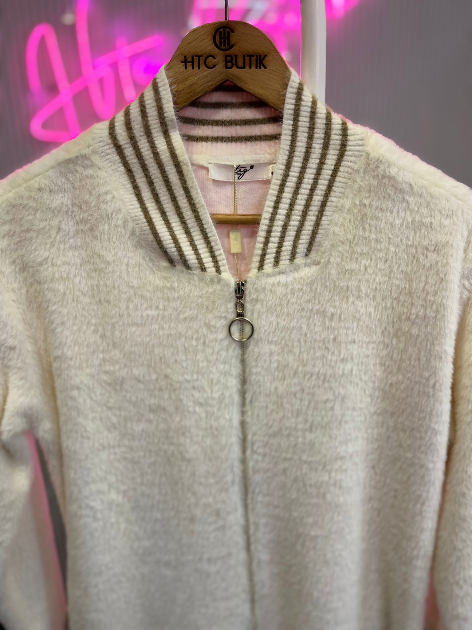 Angora tavşan tüyü ayrımı ribanalı kürk cekettir.