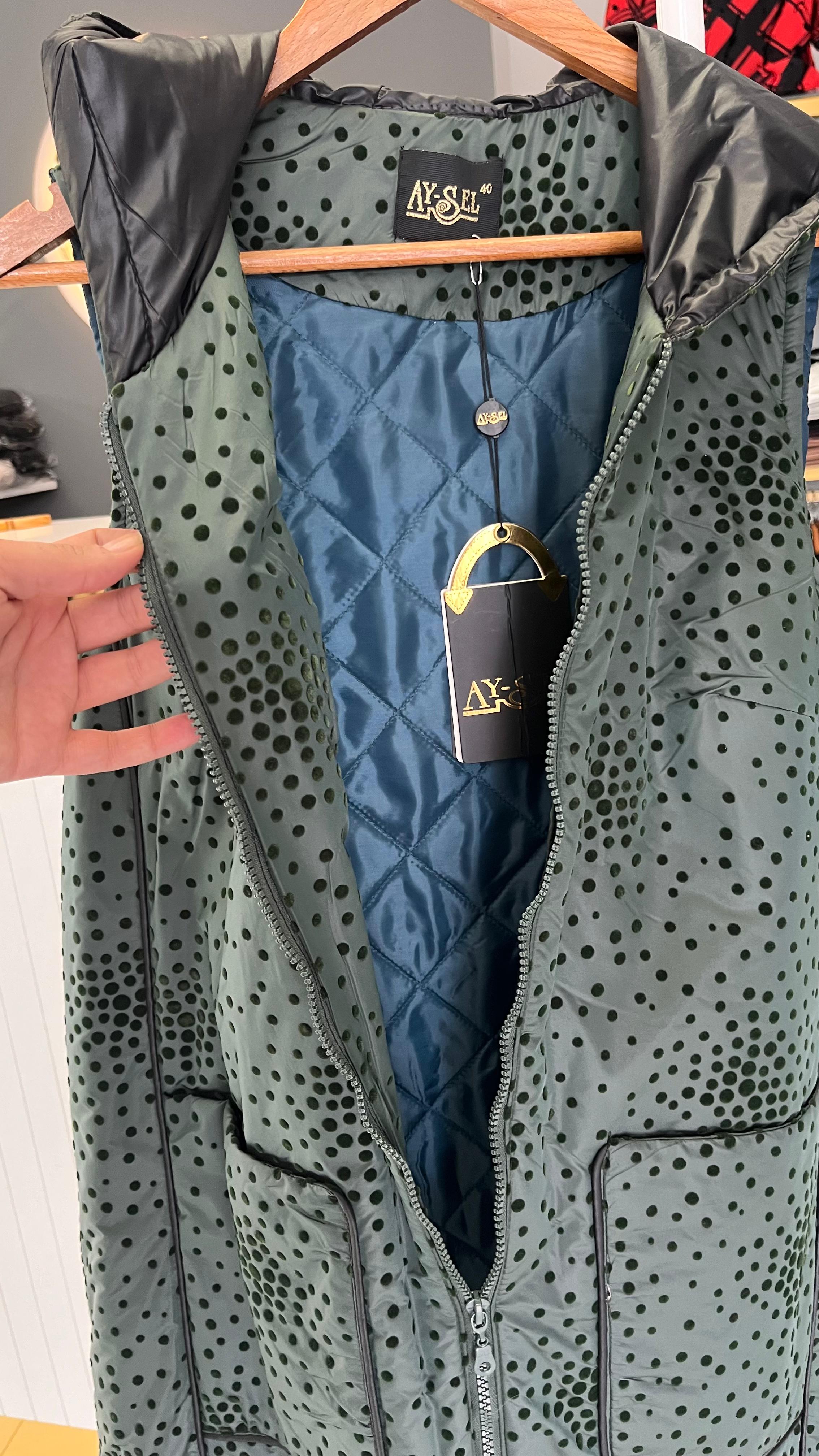 Ürünümüz kadife puantiyeli ve fermuarlıdır.