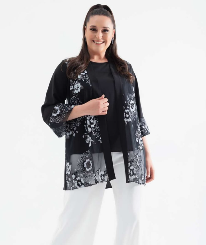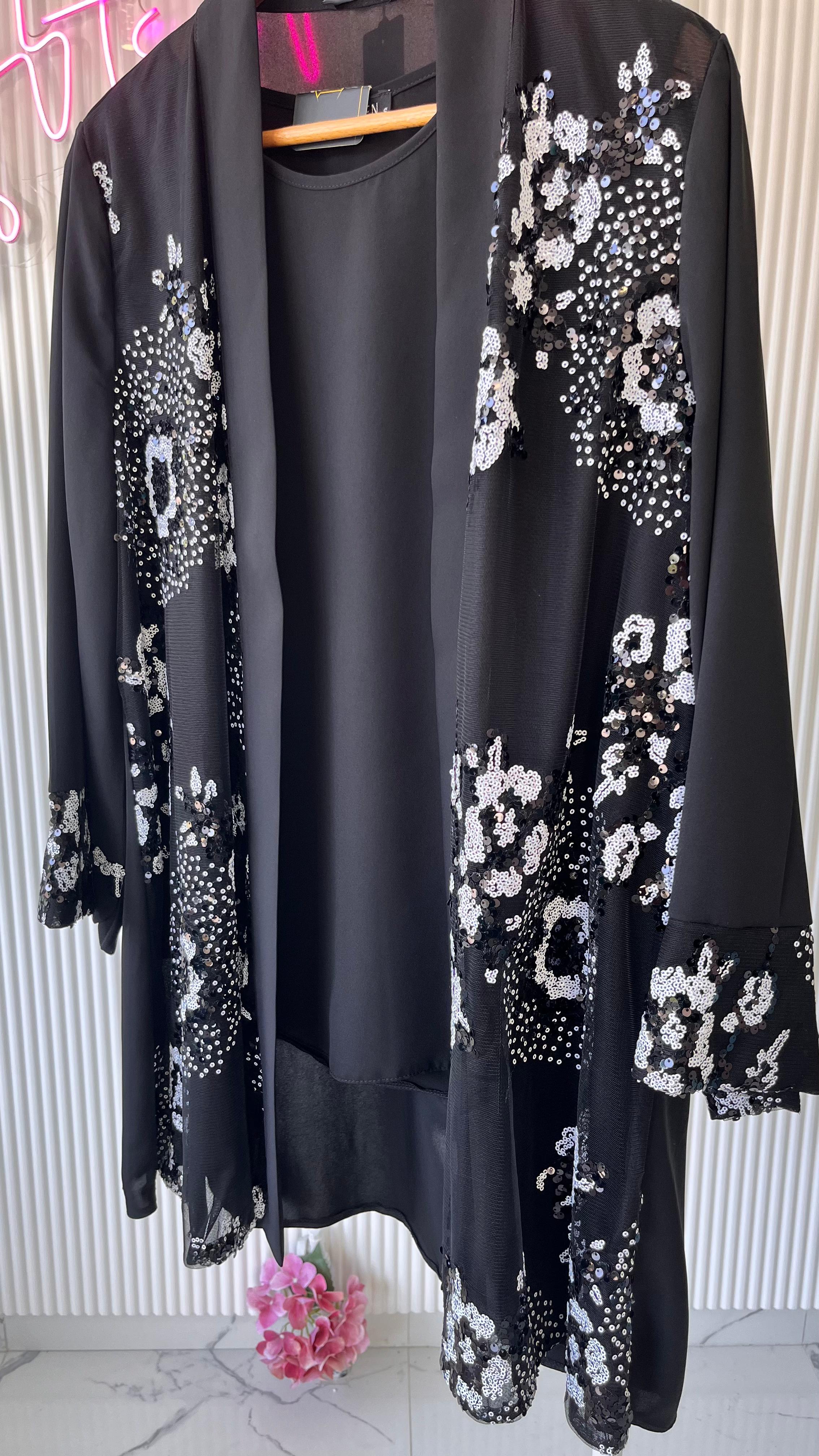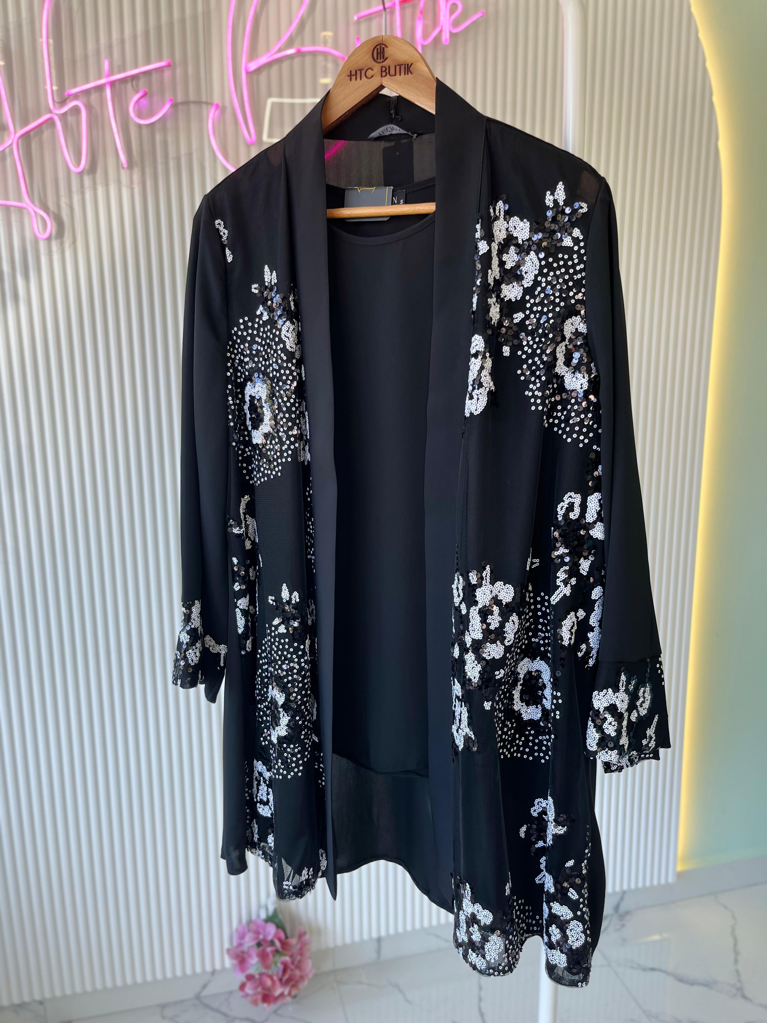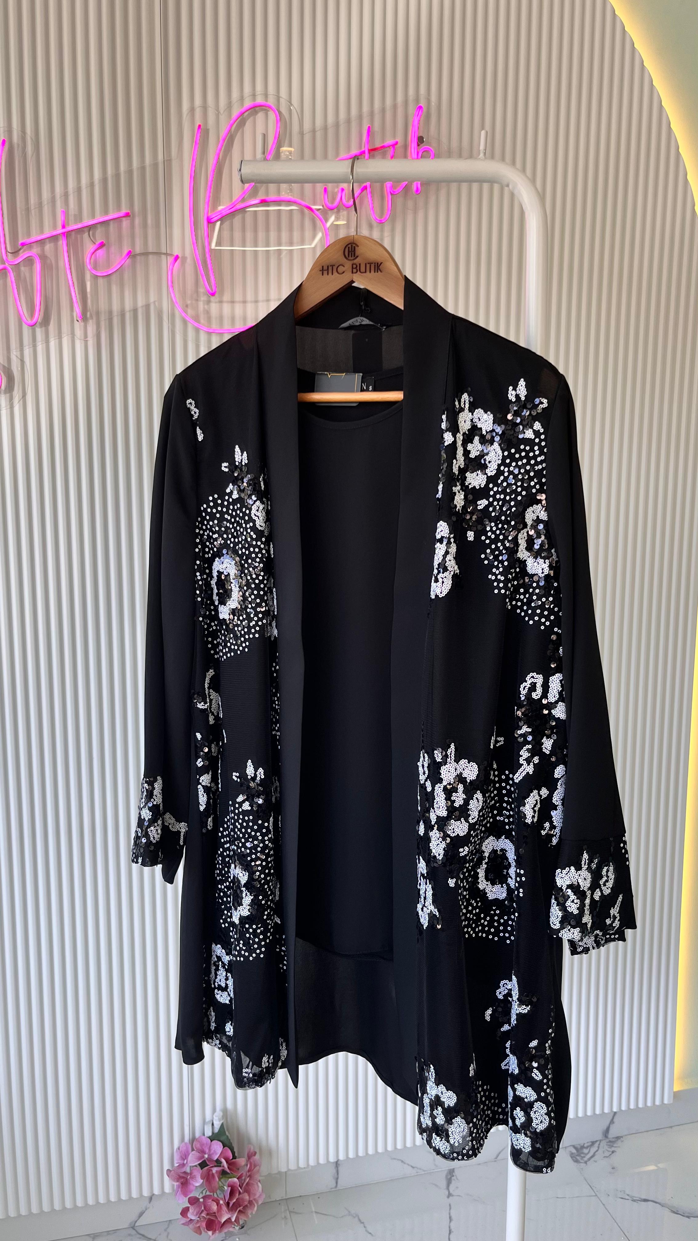 Ürünümüz krep kumaştır iç bluz sıfır kollu olup ceketimiz pul payet işlemedir dökülme solmaz yasanmaz