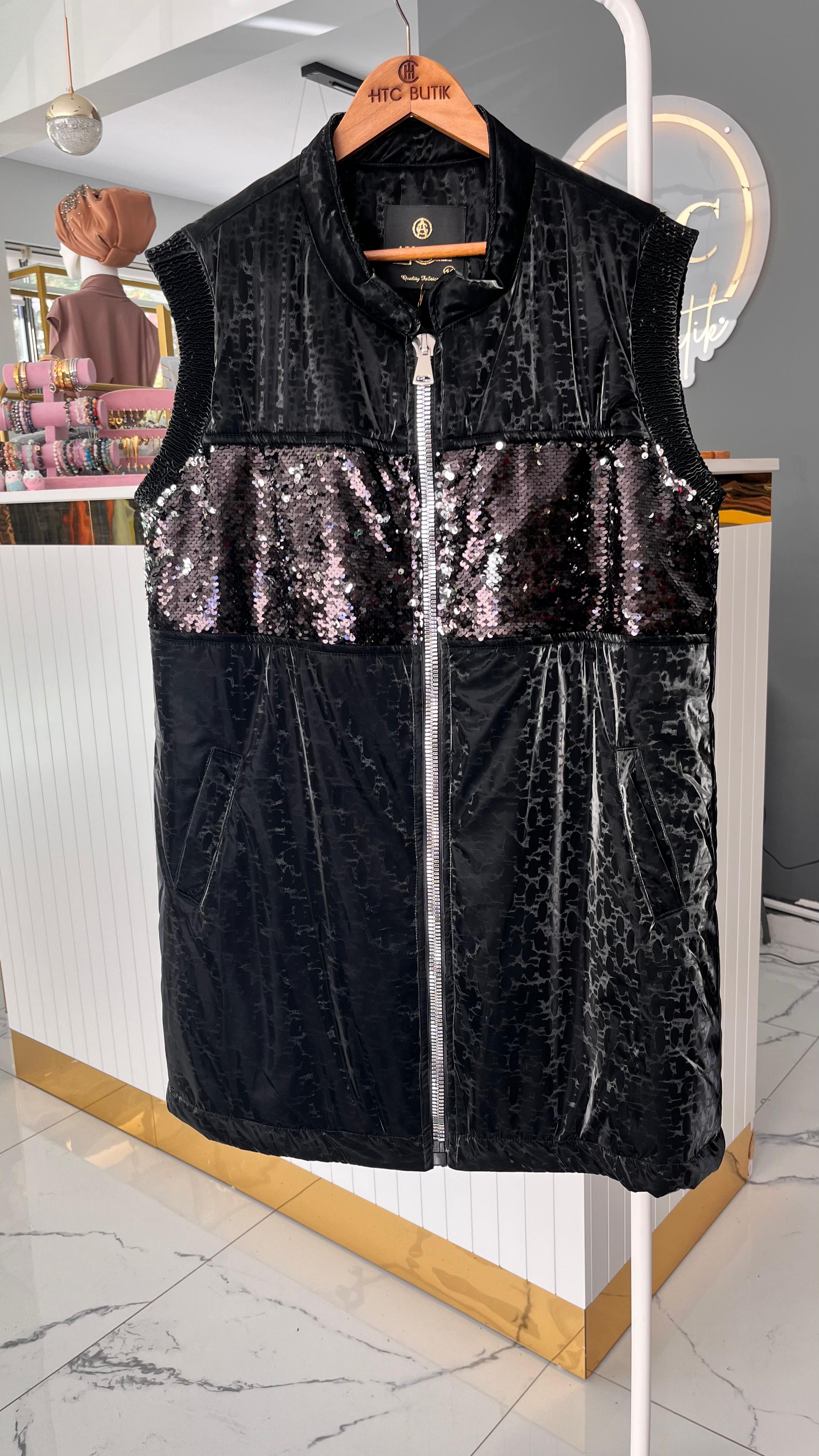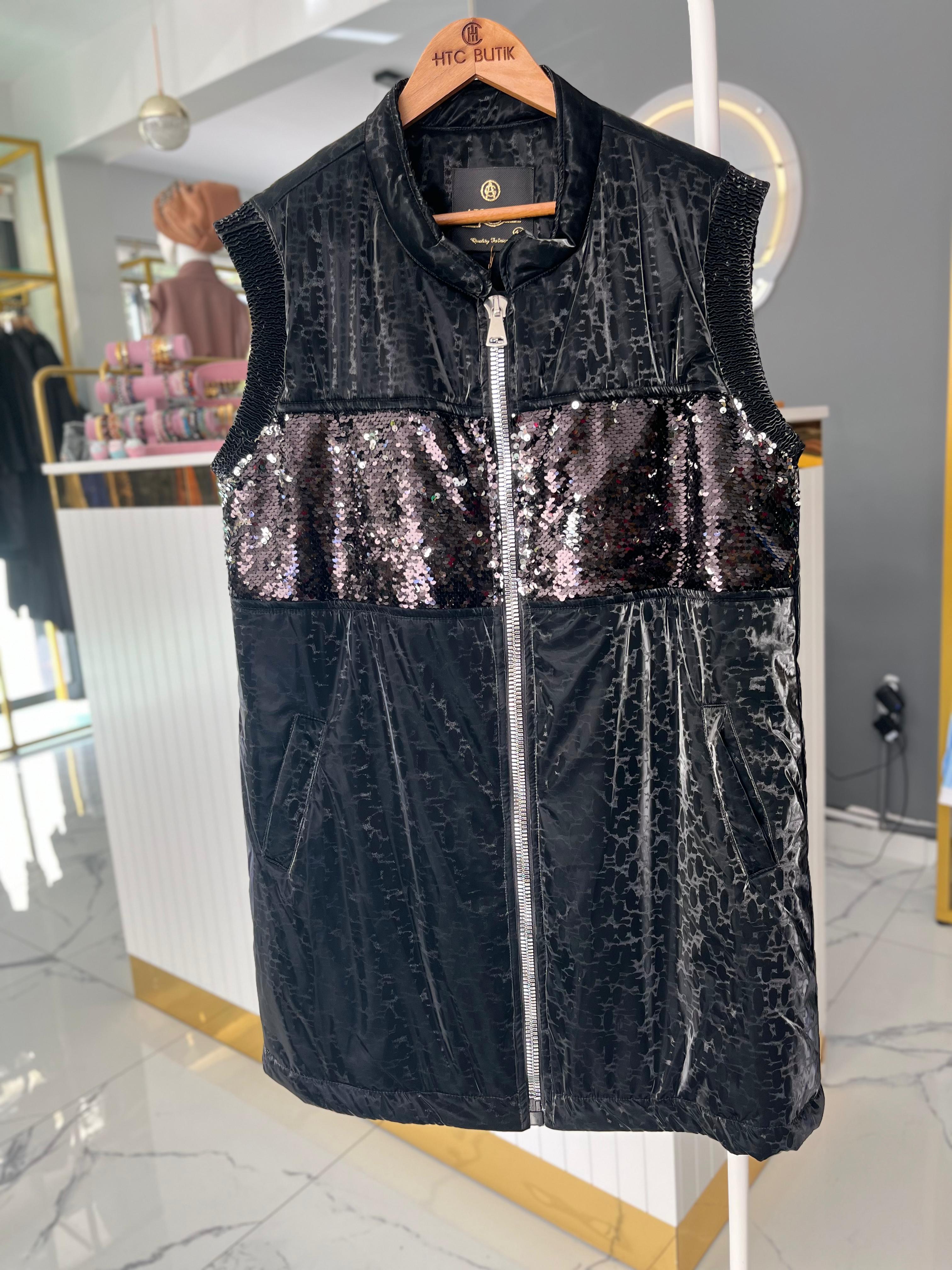 Göğüs ve sırt kısmı pul payetlidir, herhangi bir dökülme olmaz. İçi astarlıdır. yelek boy uzunlugu 87 cm dir