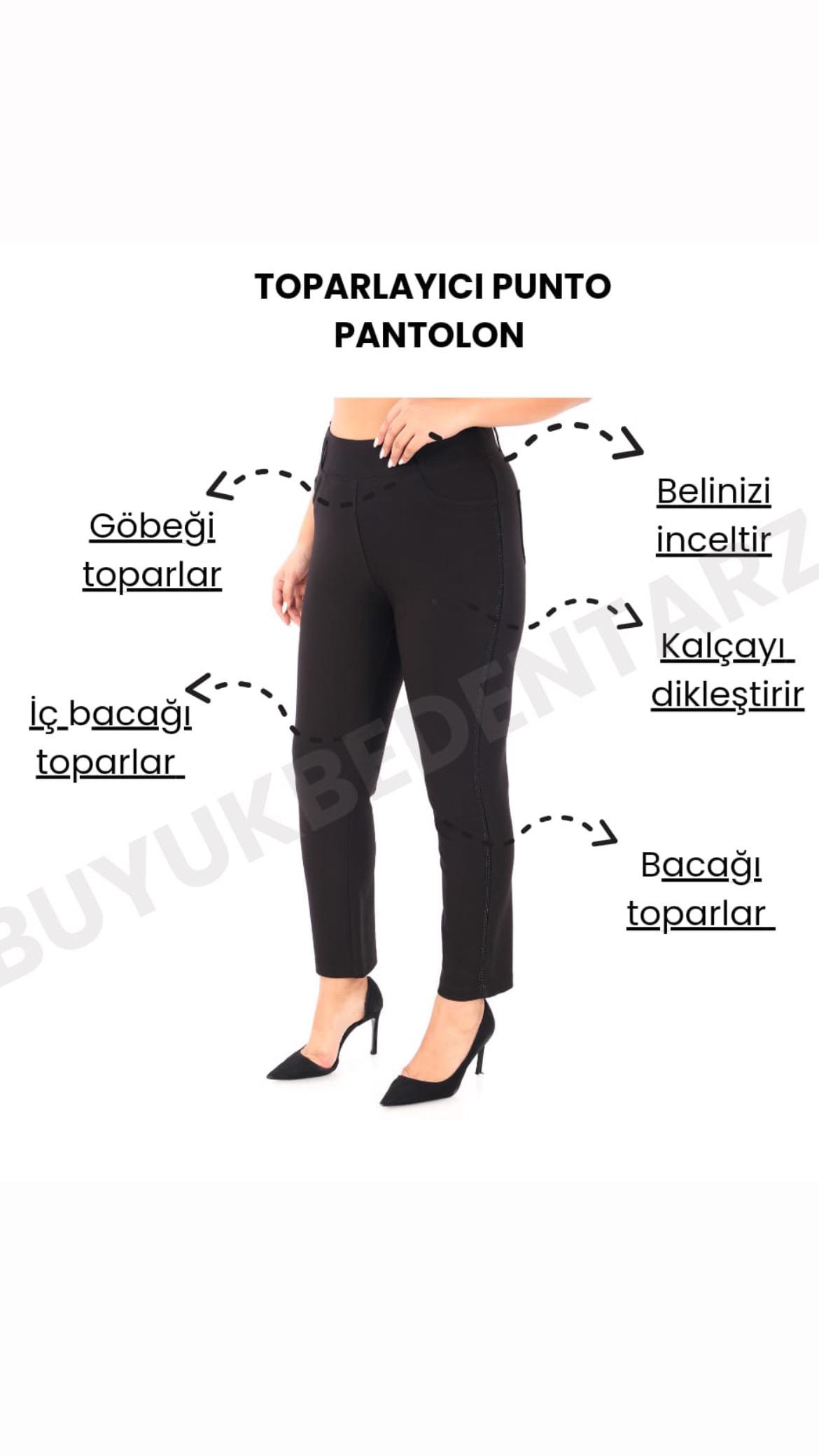 Pantolonumuz yüksek bel toparlayıcı punto kumaştır.