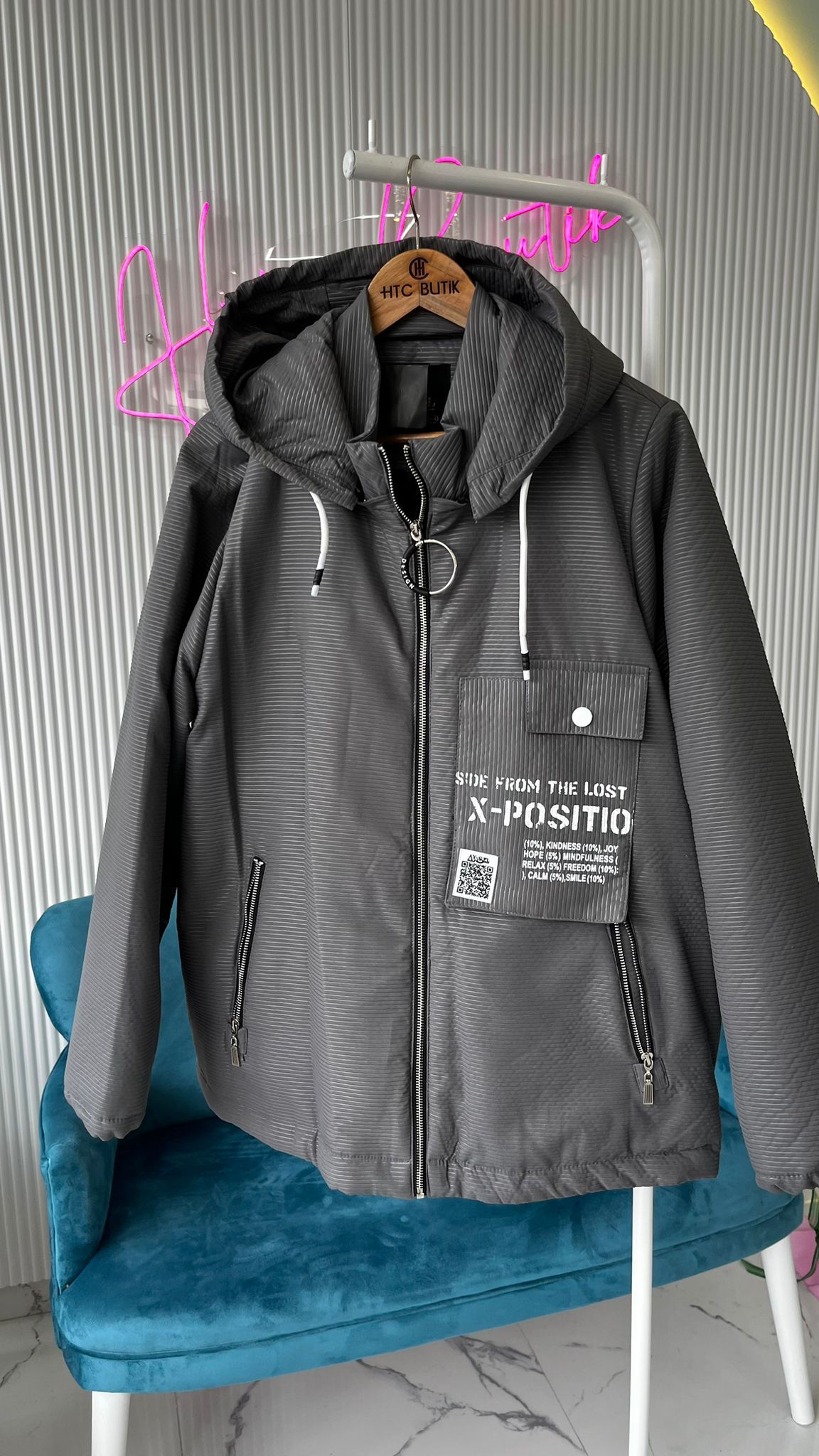 - Ayarlanabilir kapüşon ve bel detayları